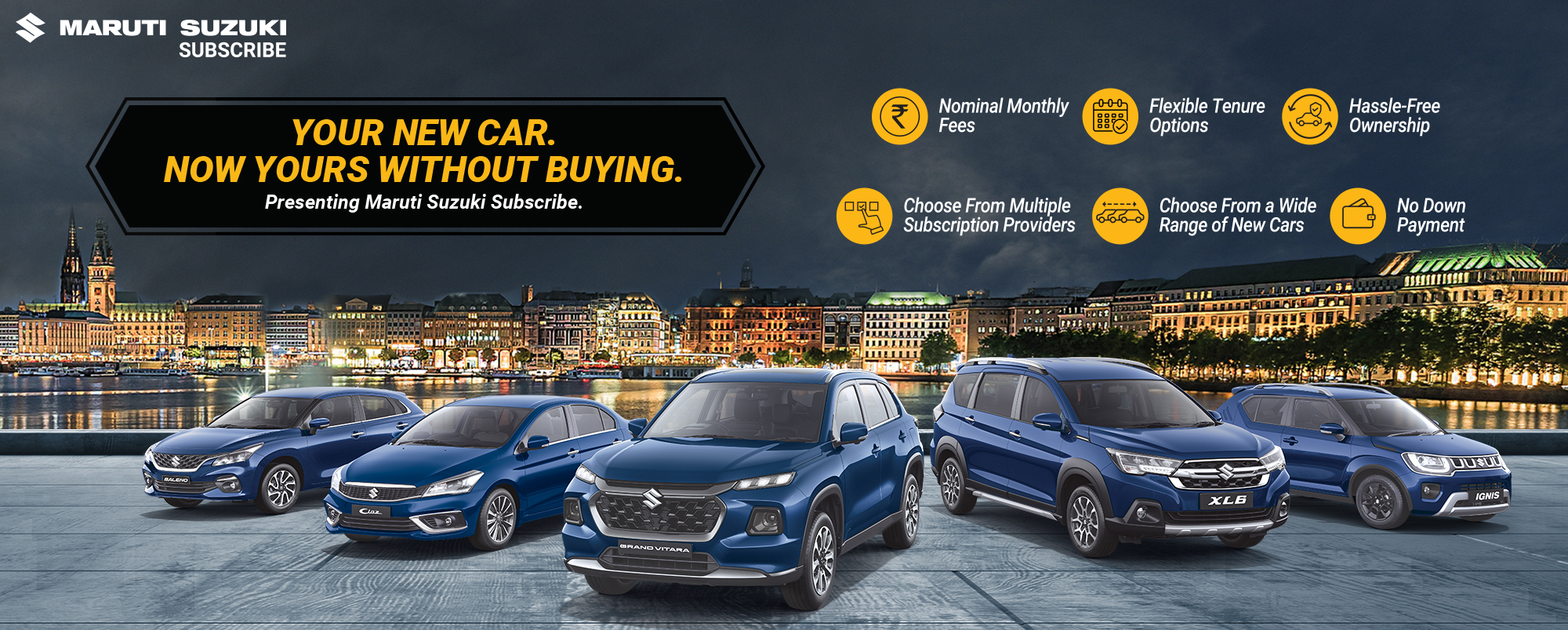 Maruti Suzuki Subscribe enables all customers to enjoy driving their preferred Maruti Suzuki cars without having to deal with all the financial responsibilities that come with owning a car.All you need to do is opt for a monthly subscription plan at a fixed monthly fee, which includes the routine maintenance and insurance costs, and choose a flexible tenure. At Bimal Auto Agency in, GS Road, Guwahati, all Hatchback, Sedan, SUV, the MUV models line-up includes Baleno, Invicto, EVitara, Jimny, Ciaz, Ignis, Fronx, Grand Vitara, XL6. Here, you will enjoy Maruti Suzuki Subscribe benefits such as:
